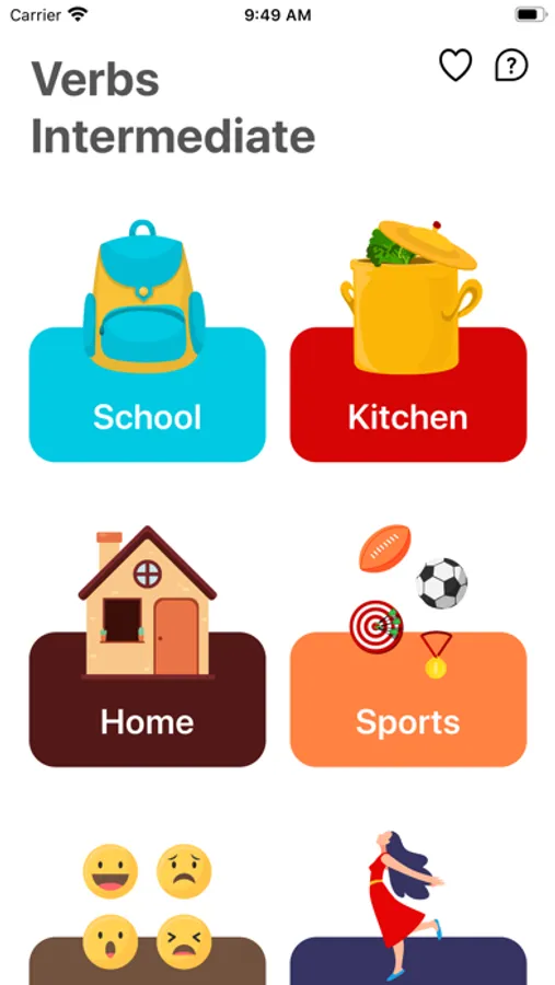 Learning Intermediate English Verbs is one of the best ways to sound more like native speaker. This application provides more than 120 Intermediate English Verbs, with graphical resources connecting to the meaning of each one, and visual exercises that allow you to learn them in a fun way.