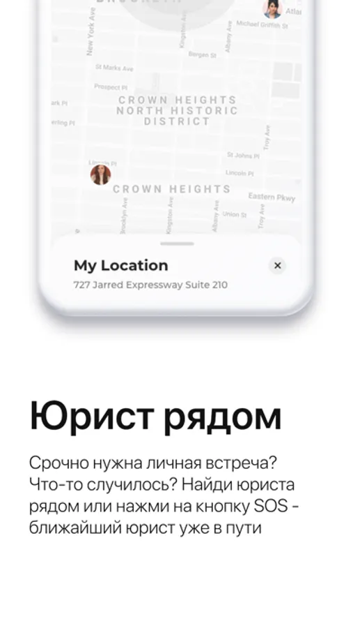 ⁃ Карты где можно найти юриста в непосредственной близости от своей локации и организовать встречу.