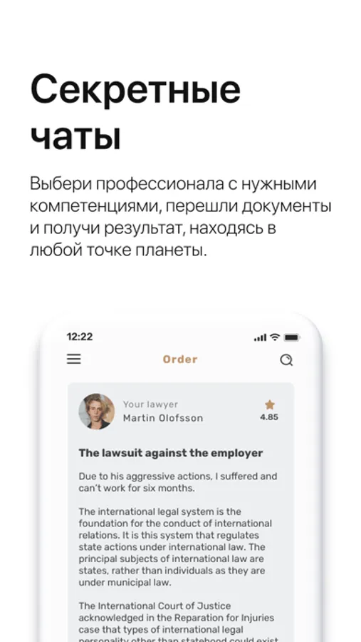 ⁃ Удобный рынок юридических услуг в одном приложении, без необходимости несения каких-либо затрат