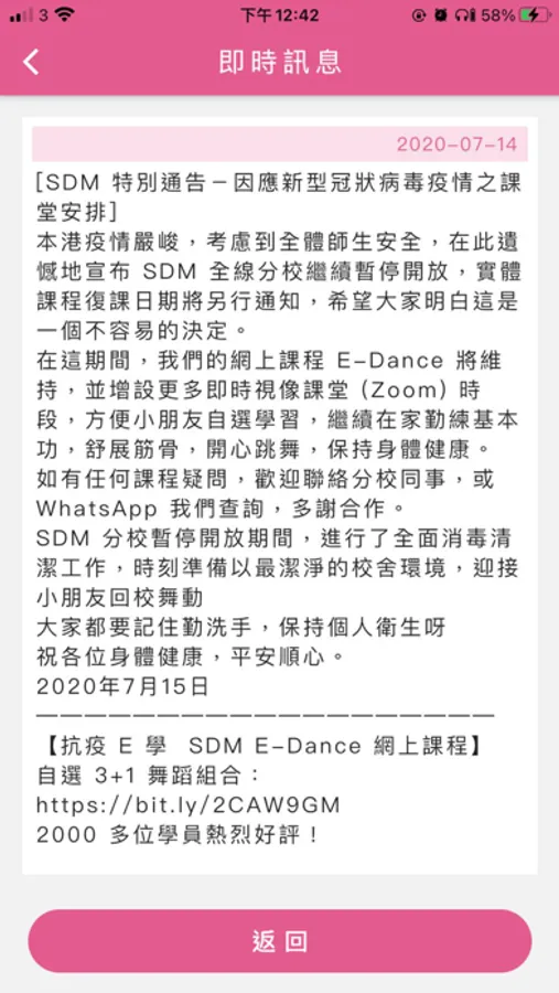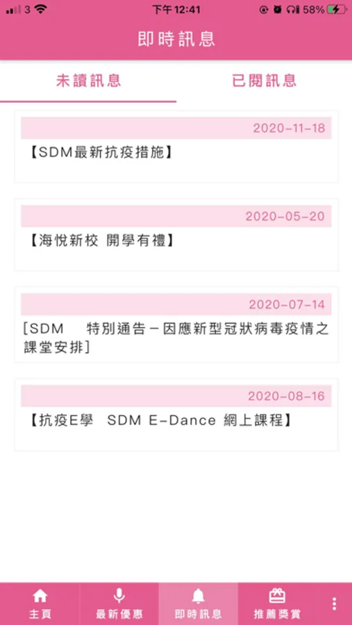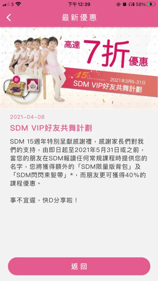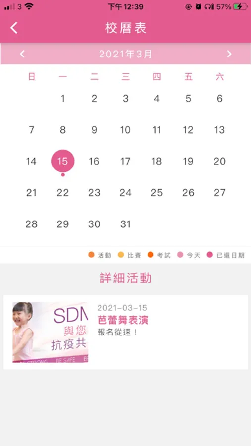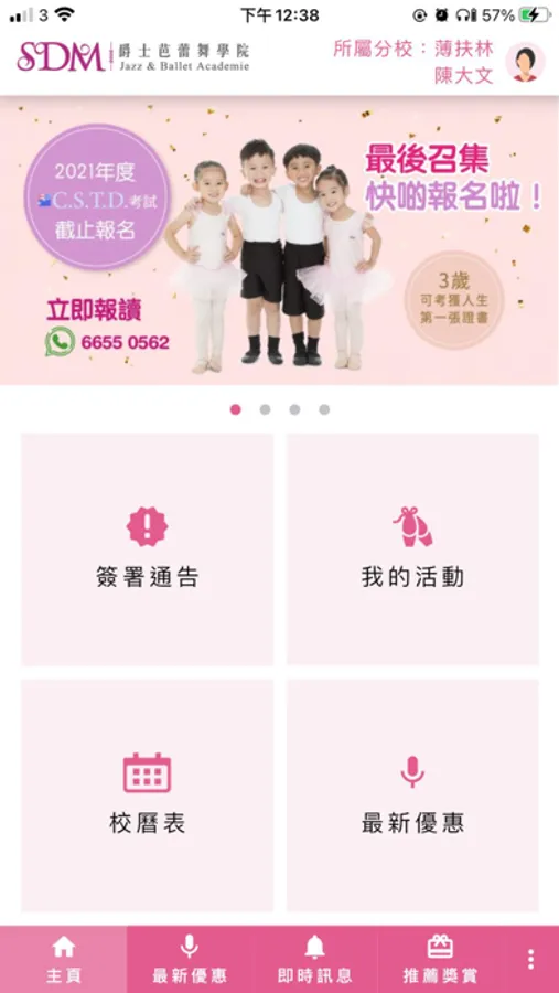 SDM - 家長版行動應用程式,讓學生家長查閱子女所屬分校及已報讀的課程、簽署通告、查看校曆表活動及報名、相關活動及考試日期,同時獲取最新優惠、即時訊息、推薦獎賞等。