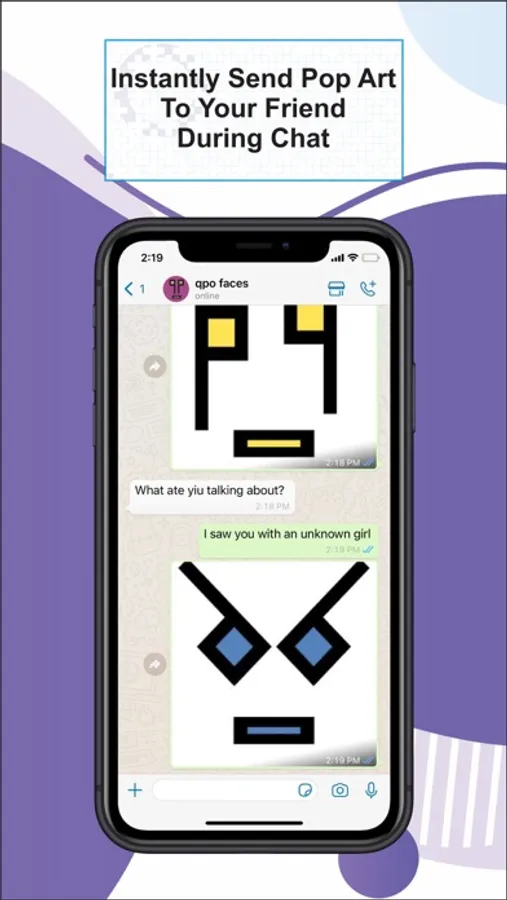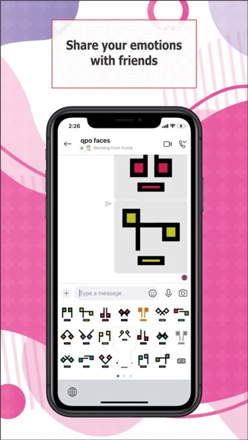 With the qpo faces, everyone can share their mood, emotions and feelings with others, pictorially in pop art style (in form of emoji stickers).