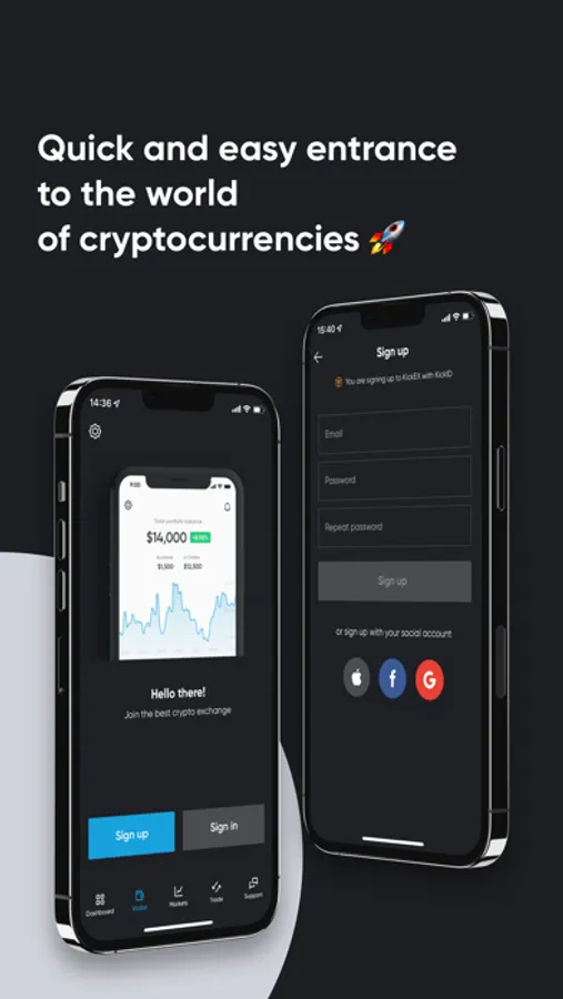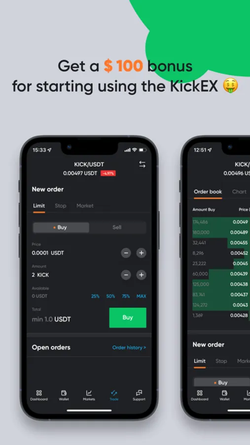 By combining the convenience, security and quality of our service, we have created the best cryptocurrency exchange, the use of which will make your cryptocurrency exchange trading more convenient and enjoyable than the competition - you won't want to trade anywhere else but KICK. Convenient charts, clear order system and classic interface will allow you to successfully start trading from the first minutes.