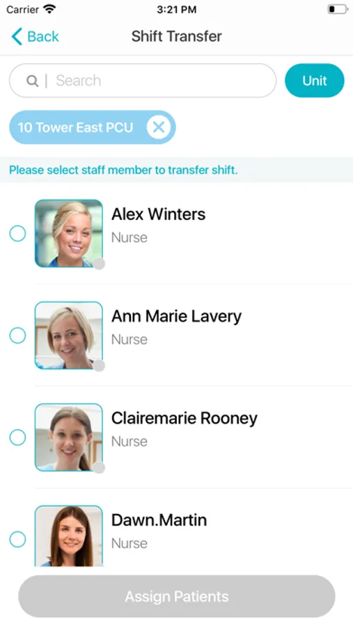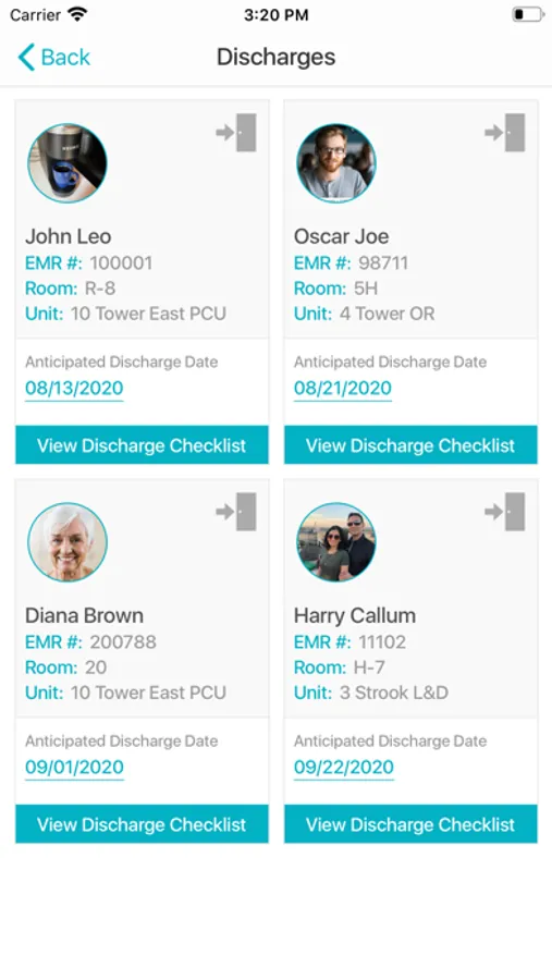 MiHealTeam replaces the traditional whiteboard. The healthcare professionals assigned to the patient are viewable in the “My Care Team” tile which is on the main dashboard of the app. In the “My Care Team” portion of the app, the patient's care team is shown with the staff members' name, title, and high-resolution photo.