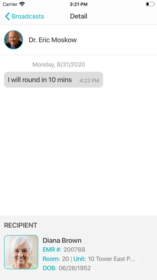 MiHealTeam improves the quality of the patient’s hospital experience by storing medical updates and informing the patient and nursing staff of physician rounds through a broadcast function within the dashboard.