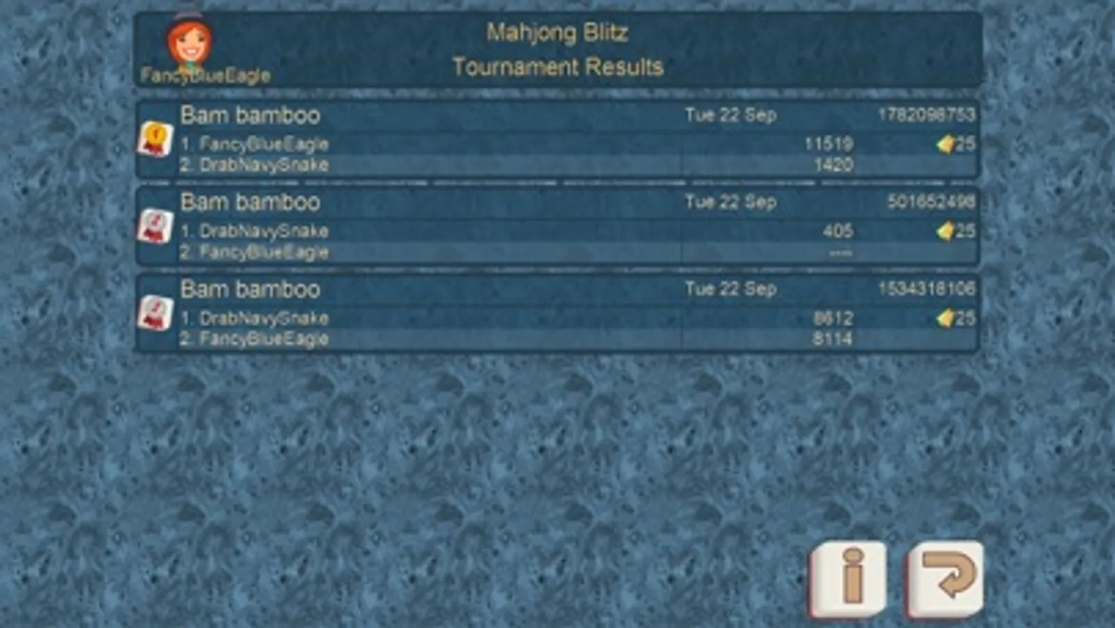 When playing tournaments the layout and tile sequence is the same for all competitors. All players have 2 hints and 1 shuffle per tournament to use as they see fit. Complete the board without using them scores additional bonus points. Top score wins, so why not test your tile matching skills and see if that’s you?