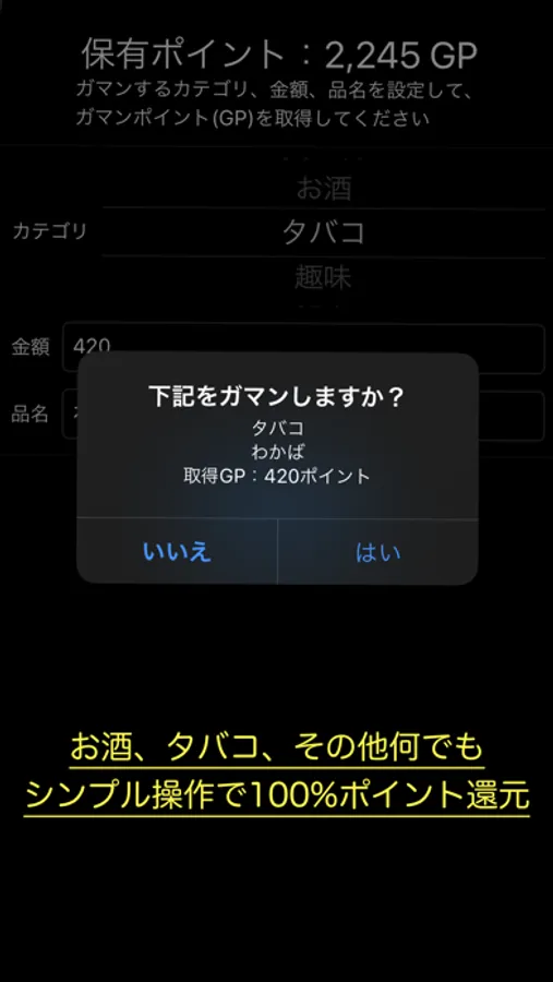 ガマンポイントアプリであなたのガマンを可視化しましょう!
