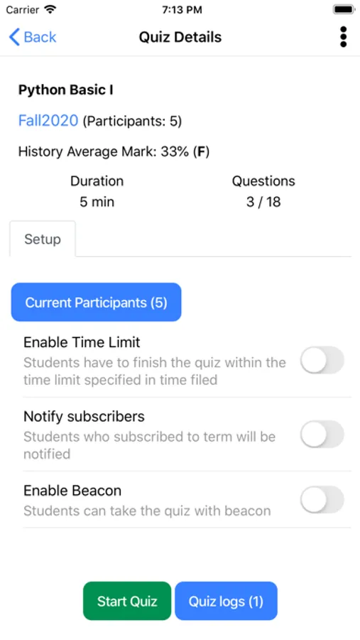 Quiz at Class is what you need for making simple fast quiz. It does not matter if you are an instructor or a person who likes get people’s knowledge about an topic or a question right from their phone, Quiz at Class is there to help you solve your problem.