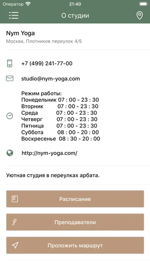 С помощью приложения Вы можете следить за новостями, расписанием студии, регистрироваться на занятия, оперативно получать информацию об изменениях в расписании и специальных предложениях.