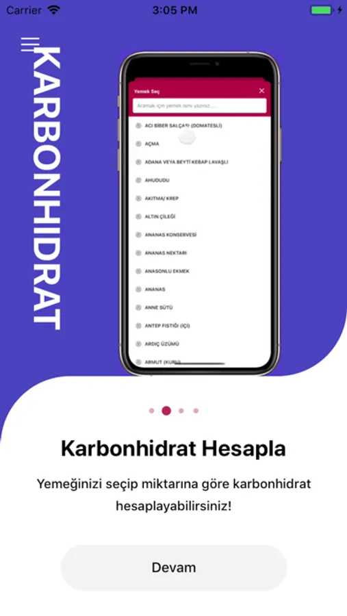 • Birden fazla besin girerek öğününüzün toplam karbonhidrat miktarını hesaplayabilirsiniz.
