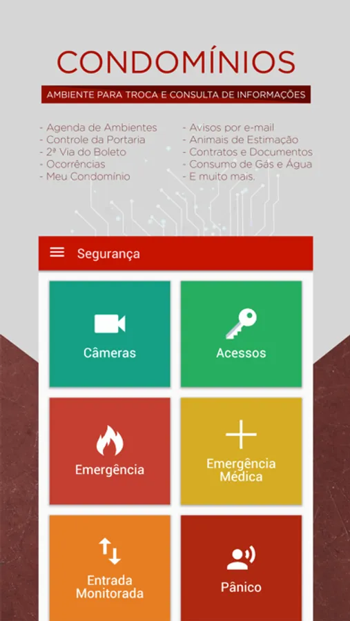Possibilidade de convidar os amigos, visualizar as câmeras, abrir as portas e ser notificado quando seus amigos chegarem no Condomínio.