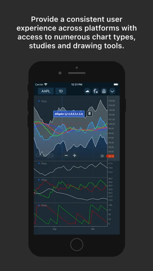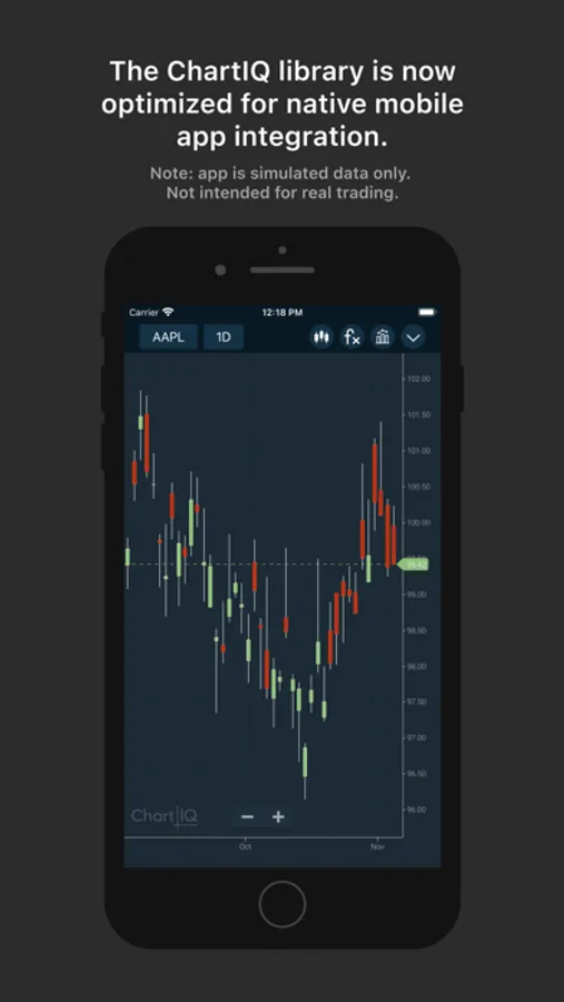 ChartIQ is the first and only professional grade HTML5 Charting Library solution that works seamlessly on any platform (mobile, web, desktop) or framework (Angular, React, Vue) using a single library. It is pure JavaScript and runs entirely within a browser or web view with native controls. Most companies have at least one financial charting library for each platform or application they target—web, C#, Java, mobile OS's, etc. which means developers have multiple code bases to maintain. With ChartIQ, write your code once and use it everywhere.
