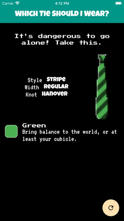 Too many ties in your closet? Not sure which one to choose? We know it can be stressful. Put the stress on us instead. We'll pick out the perfect tie for you in no time. Don't have those particular colors? No problem! Hit the randomize button until you do.