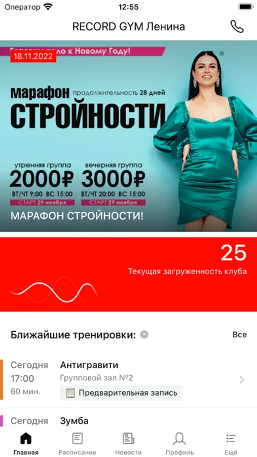 С помощью приложения вы можете следить за новостями, расписанием клубов, оперативно получать информацию об изменениях в расписании и специальных предложениях в фитнес клубе RECORD GYM и СК Арена.