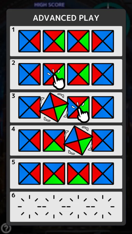 The rules are simple. Just tap to rotate the pieces and match the colors of the opposing triangles. You can now erase the piece.