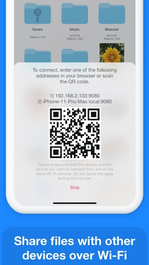 The ability to share and receive files over Wi-Fi with devices on the same network