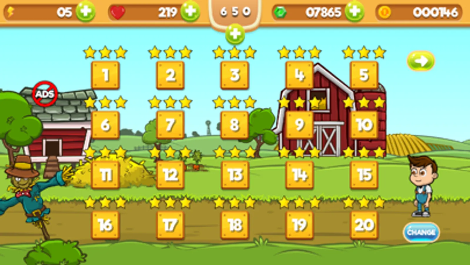 Embark on an adventurous journey through multiple worlds and levels, defeat Mudlark's minions, collect stars to unlock further worlds, and collect coins along the way.