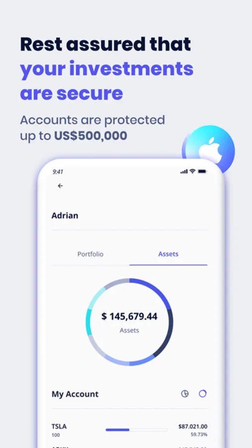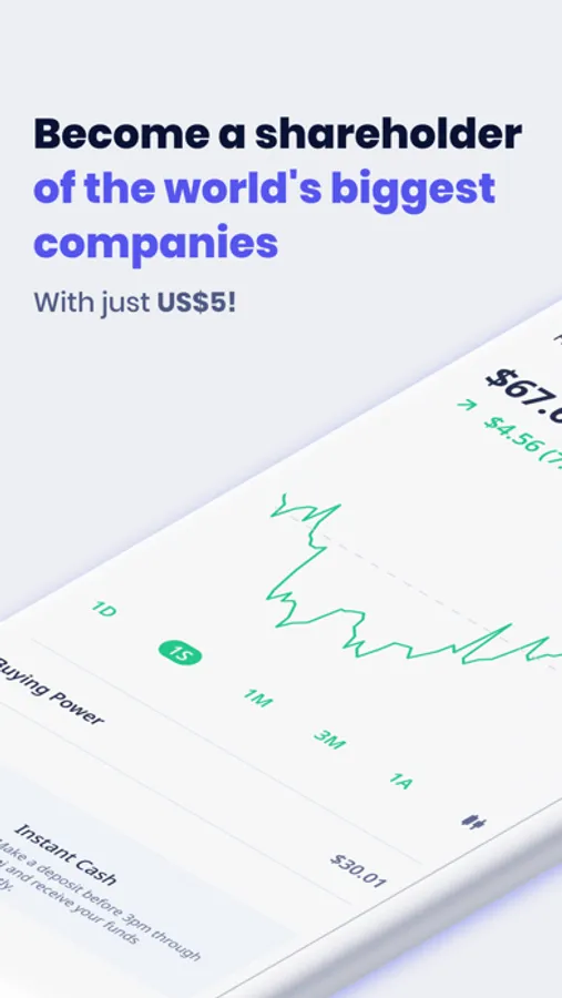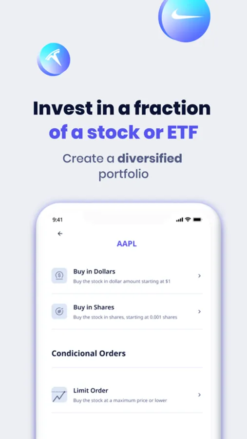 Start your investment portfolio with the amount you want. You can invest from US$1 in fractional shares, ETF or crypto.