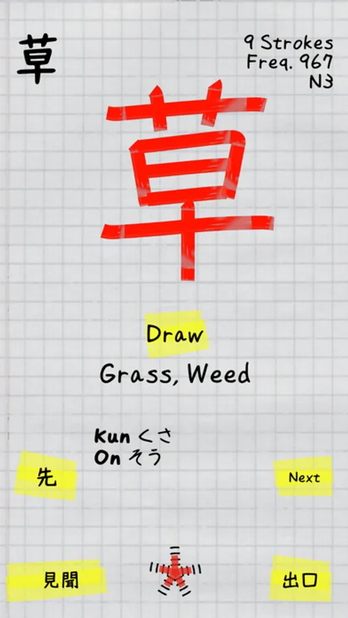 As you play, the language of the workbook changes to reflect your knowledge. Practice all aspects of kanji: readings, drawing, recall, definition, and recollection. Use your Kanji Book as simple flashcards or test yourself with 25 random questions. Once you have enough kanji to form compound kanji vocabulary words, you'll end each session with a grid of kanji which you can use to form vocabulary words.