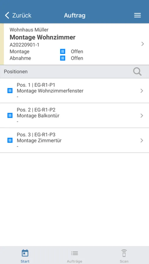- Dokumentation der Montage mit Fotos, Auswahlfragen und Beschreibungsfeldern