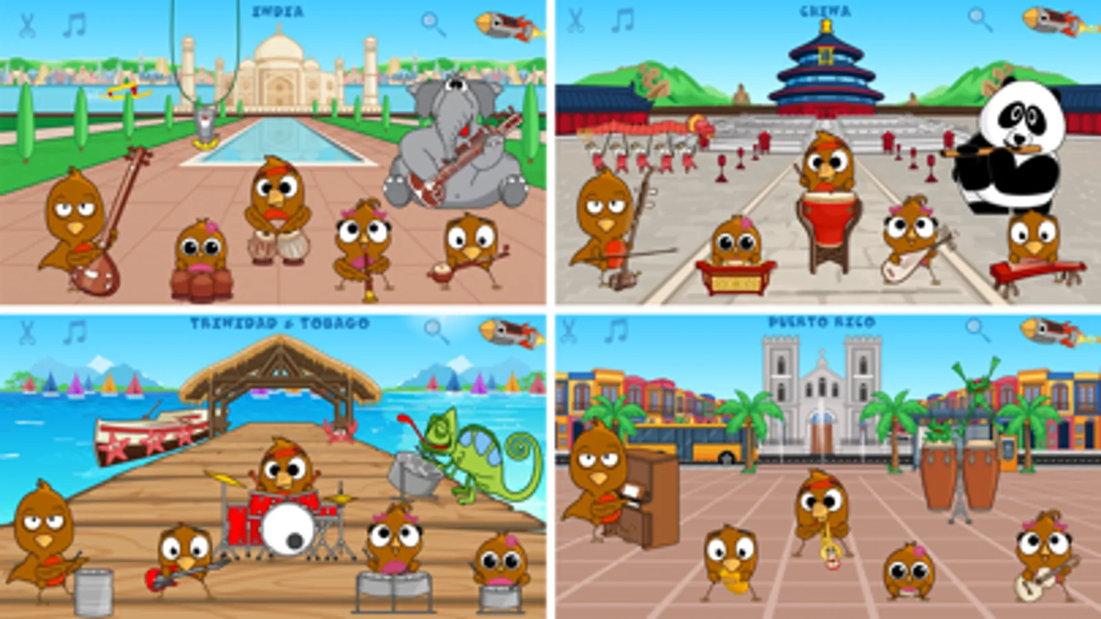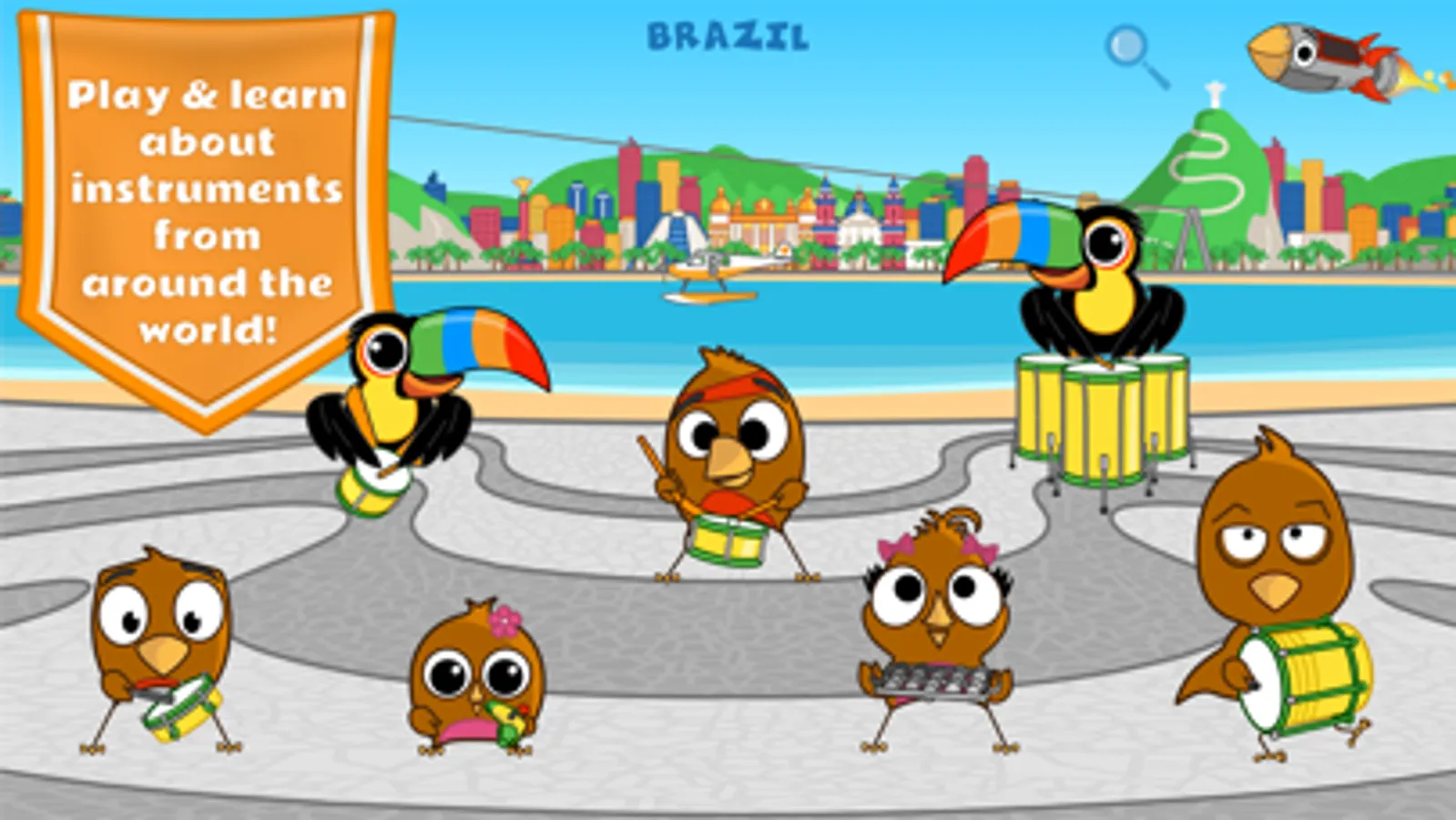 The Rock it Robins: World of Music is a fun and engaging way for children ages 2-9 to learn how over 70 different instruments from around the world work & produce sound! Choose to play each instrument by itself or explore different sound combinations by playing different instruments together. Don’t forget to explore each scene and find other fun & quirky characters to interact with. Every sound supports fundamental musical learning by introducing & reinforcing concepts such as high-low, slow-fast, steady beat, and much much more!