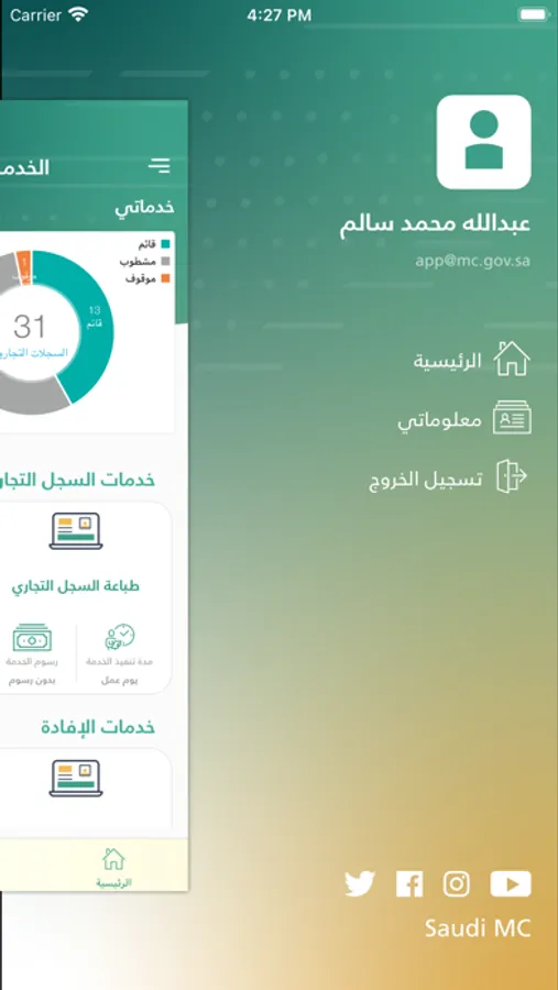 تطبيق تجارتي - يعتبر قناة رسمية خاصه بوزارة التجارة تخدم التاجر بالدرجة الأولى وذلك على السجلات الخاصة به وتقديم عدد من الخدمات عن طريق التطبيق مثل بعض الافادات.