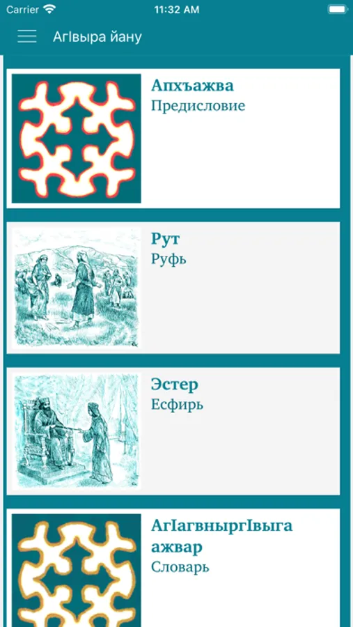 The app includes dictionary links to the key terms and a short glossary of key terms. Also includes audio for Abaza texts (an Internet connection is needed for streaming listening or for the first download of each audio file to the smartphone's internal memory, with subsequent offline listening).