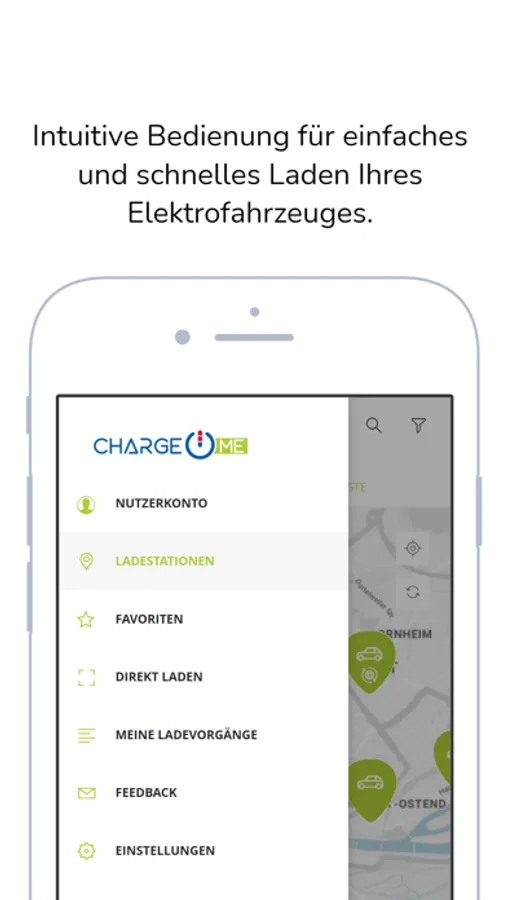 - Live-Anzeige aller verfügbaren Ladepunkte im ChargeME-Verbund sowie Ladepunkte angeschlossener Partner und Roamingnetzwerke (z.B. Ladenetz/eClearing, Hubject/Intercharge, Gireve, etc.)
