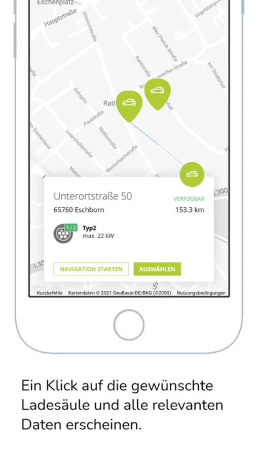 Sie haben die Möglichkeit, sich auf dem kürzesten Weg zur Ladestation Ihrer Wahl navigieren zu lassen.