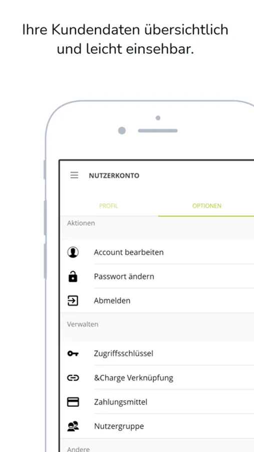Ihre persönlichen Daten und Abrechnungsinformationen können Sie direkt in der App verwalten. Alle Ladevorgänge gelangen in Ihr persönliches Nutzerkonto; die Abrechnung erfolgt bequem via Lastschriftverfahren oder Kreditkarte. Zusätzlich lassen sich vergangene und aktuell laufende Ladevorgänge, die Zählerstände und die damit verbundenen Kosten live einsehen.