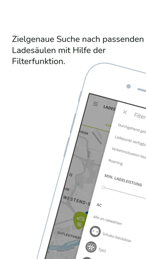 Mit Hilfe der Übersichtskarte finden Sie schnell die passende Ladestation in Ihrer Nähe. Die Übersichtskarte zeigt Ihnen alle für Sie zugänglichen Ladepunkte an. Diese können Sie ganz einfach aus der App heraus freischalten. Sie sehen auch deren aktuelle Verfügbarkeit und Sie erhalten Informationen zu möglichen Störungen.