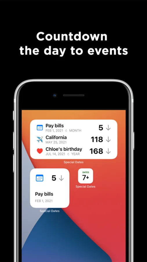 Supports all the widget sizes that have iOS 14 and the dates will be synced between your devices