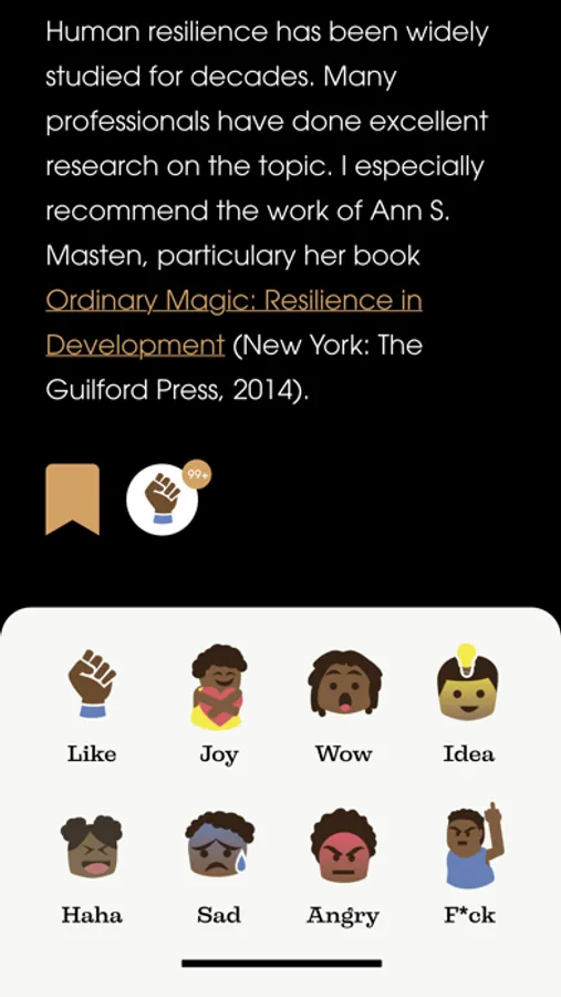 The WYSER app allows reader to get a full-media experience from many books at the touch of a finger. Get a deeper understanding of a passage or section of a book by getting immediate access to related web content like articles, videos, additional books, and more as well as detailed chapter summaries. Go deeper into your interests with a simple click. Users can also leave emotional reactions to various footnotes as well as share those reactions and footnotes with others. WYSER highlights trending and popular footnotes so users can see how other readers are reacting.