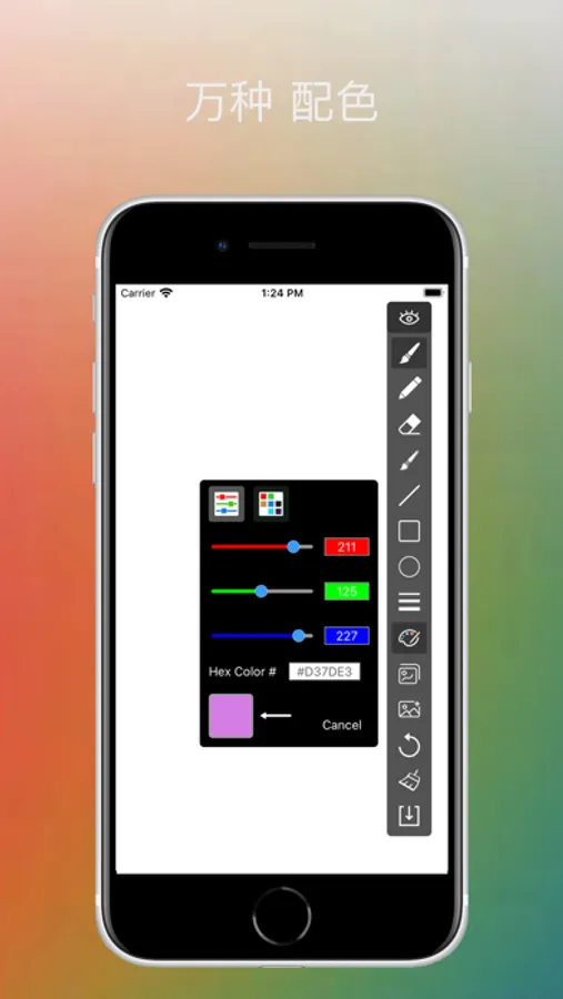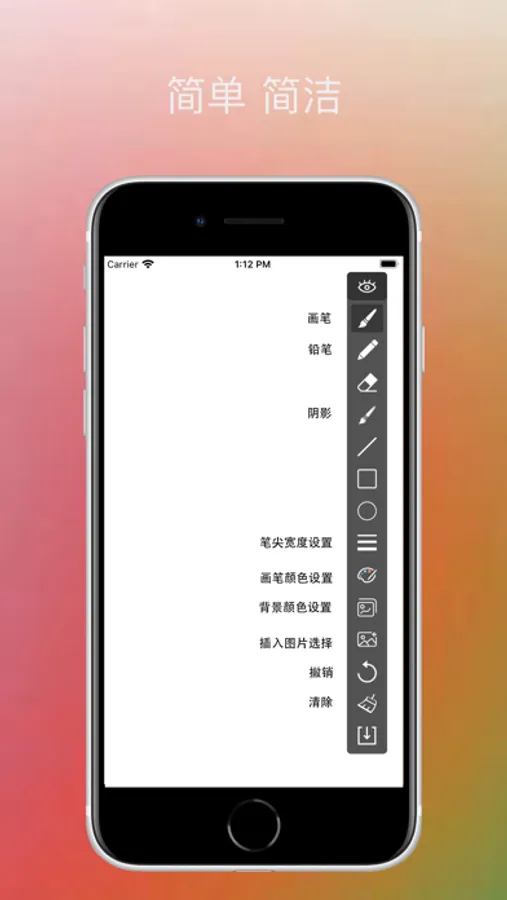小画板是一款工具类软件,功能上看就是一款涂鸦工具,主要功能有画笔,蜡笔/铅笔,添加阴影,画笔颜色,背景颜色,橡皮修改,清除,保存作品,图片导入等功能。