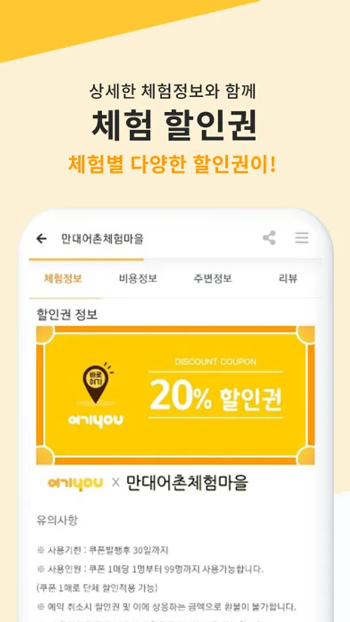 4. 여기유 사용자만을 위한 체험 할인쿠폰 제공 서비스