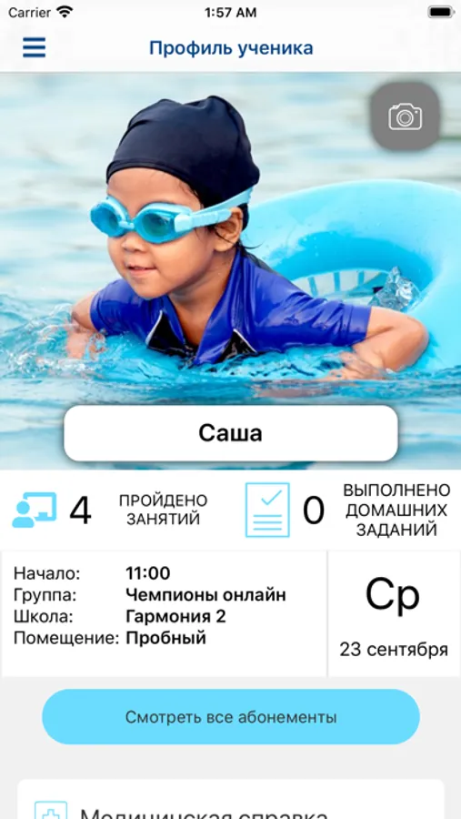 Приложение позволяет выполнять домашнее задание, отслеживать посещение ребенка, быть постоянно на связи с тренером, оплачивать абонементы онлайн, учувствовать в вебинарах от наших специалистов, получать информацию, связанную с школой.