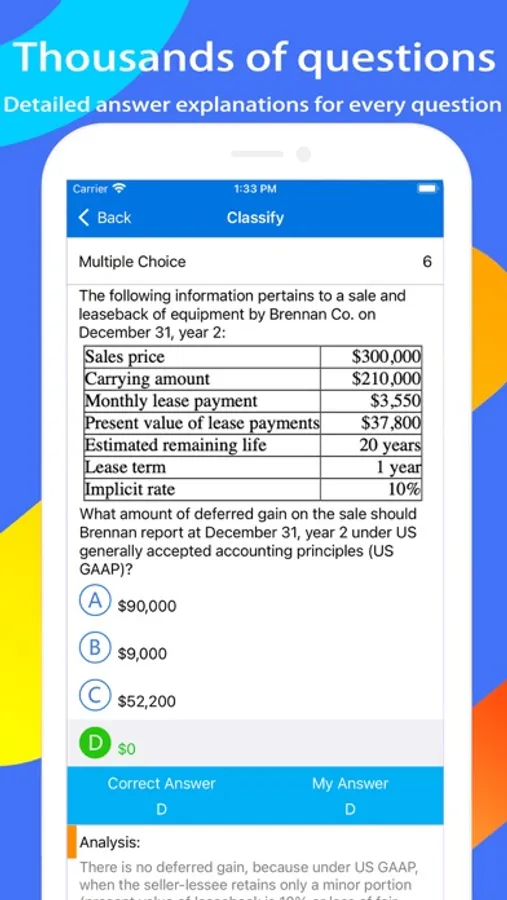 CPA FAR Exam Expert is a powerful exam simulator that allows you to choose various practice tests with detailed answer explanations for every question.