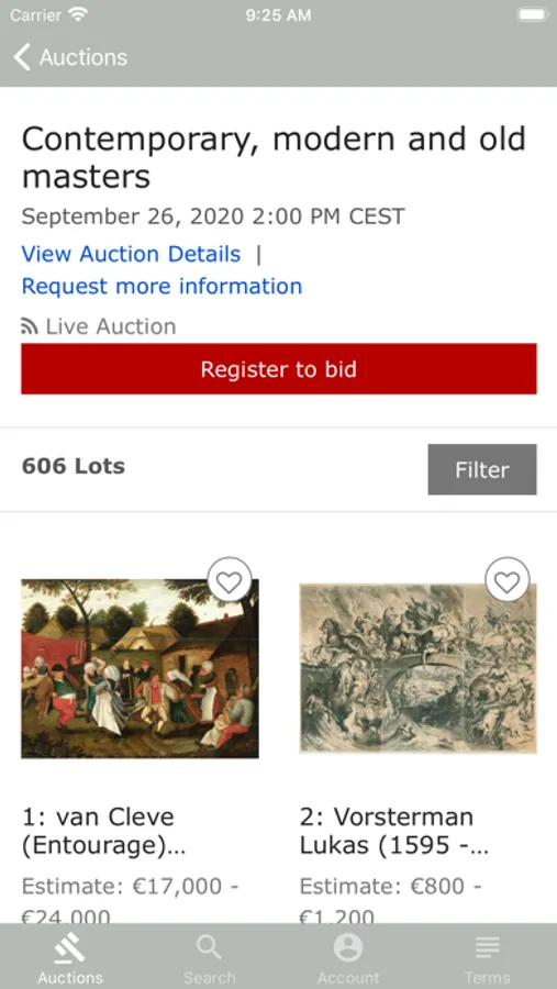The new De Vuyst app lets you view our auction calendar and bid live in our auctions from your mobile device.