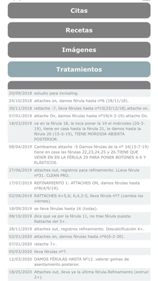 Con esta app podras consultar las citas futuras y pasadas, solicitar citas nuevas, ver los tratamientos realizados, las recetas dispensadas, los presupuestos, las imágenes (fotos, radiografías), los pagos y comunicarte con el personal de la clinica.