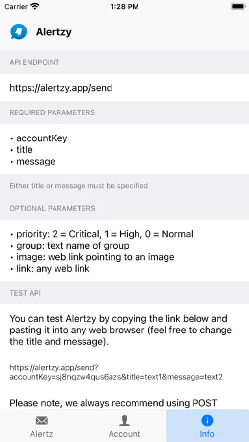Alertzy utilizes a straightforward REST API to send push notifications, making integration effortless for your application or any other system. You don't need to be a programmer to set up basic alerts. With the HTTP library available in your application's language, construct a POST request to the following URL: https://alertzy.app/send.