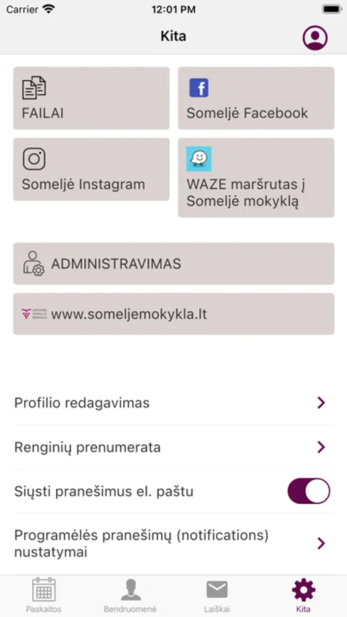 Programėlė skirta Someljė mokyklos studentų veiklai organizuoti.