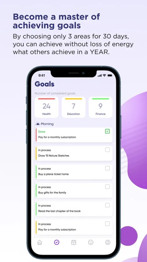 24Goals App helps to develop skills aimed at achieving goals, maintaining life balance, mental state and motivation.
