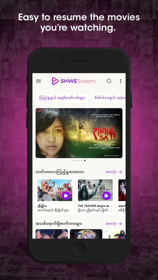 Shwe Stream (ShweStream) is the best movie application in Myanmar.