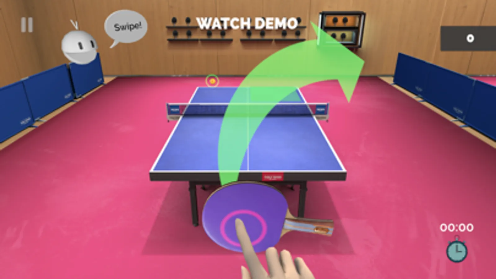 Pass 7 practice levels (30 seconds each) and test your skills in forehand top-spins, backhand top-spins and blocks!