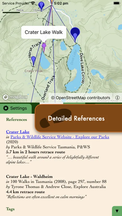 StepScape is an index and map of published day walks in Tasmania. With more than 2,000 walks from over 800 car parks, there is always a walk to suit you nearby. The built-in search can help you find it by text, length, tags or publication. The detailed references will tell you where to find full details on each walk.