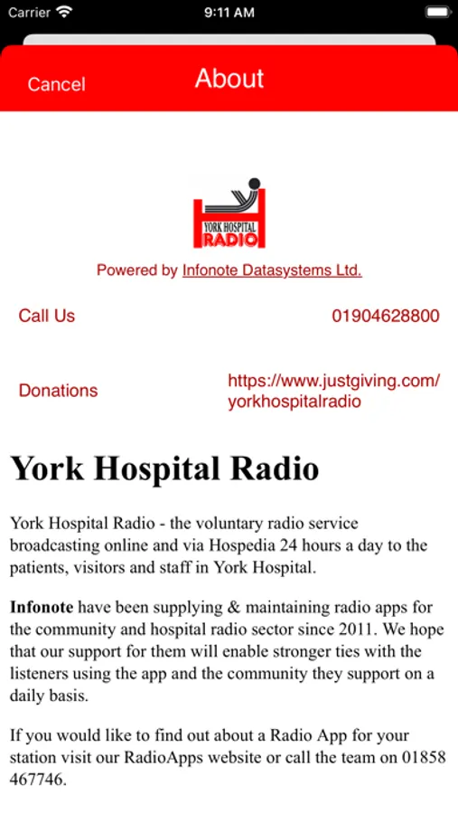 York Hospital Radio are delighted to be able to introduce their very own iOS app.