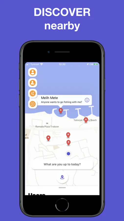 With Boil Up! you can discover and interact with people around you via map. See on map who is available for activities. Checkout their profile, interests, boiling degree and more!