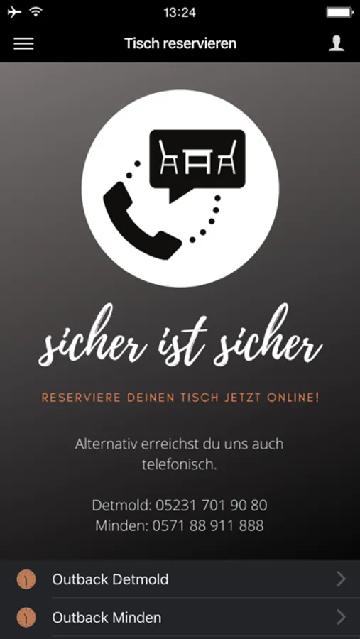 Ebenfalls kannst du aus der App heraus bei uns direkt einen Tisch reservieren und auch in unseren Speisekarten blättern.