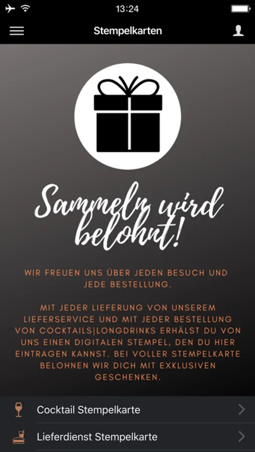 Mit Hilfe unserer App kannst du ab sofort unseren Lieferservice bequem nutzen. Weitere Funktionen wie eine Cocktail-Stempelkarte und Hot Deals haben wir selbstverständlich auch beigefügt.