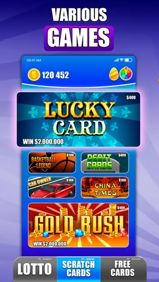 Many types of scratch-off games and scratcher cards: Winner Number, 7-17-77, Car Owner, Happy Dice, Basketball Legend, China Times, Penalty, Gold Rush, Debit Cards, Lucky Card, Neon 7, Wild Beast and more!