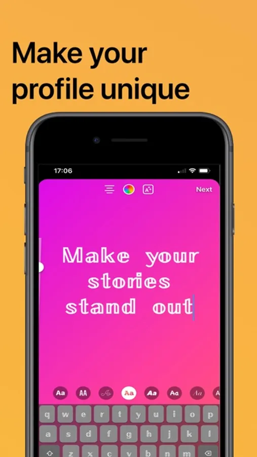 Make your Instagram, Snapchat, Facebook profiles, Stories posts shine with custom fonts and emojis. More than 60 custom fonts available.
